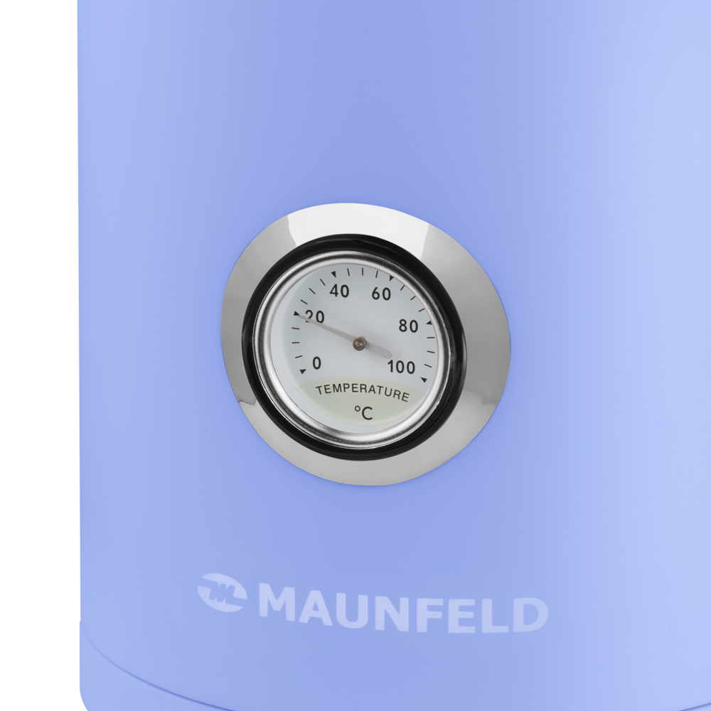 Круглый термометр, вращение чайника на 360°, автом. открывание крышки, авт/ручное отключение при закипании, при сняти с базы, при малом кол-ве воды, англ. контроллер Strix, у чайника двойные стенки, внутри металлическая колба