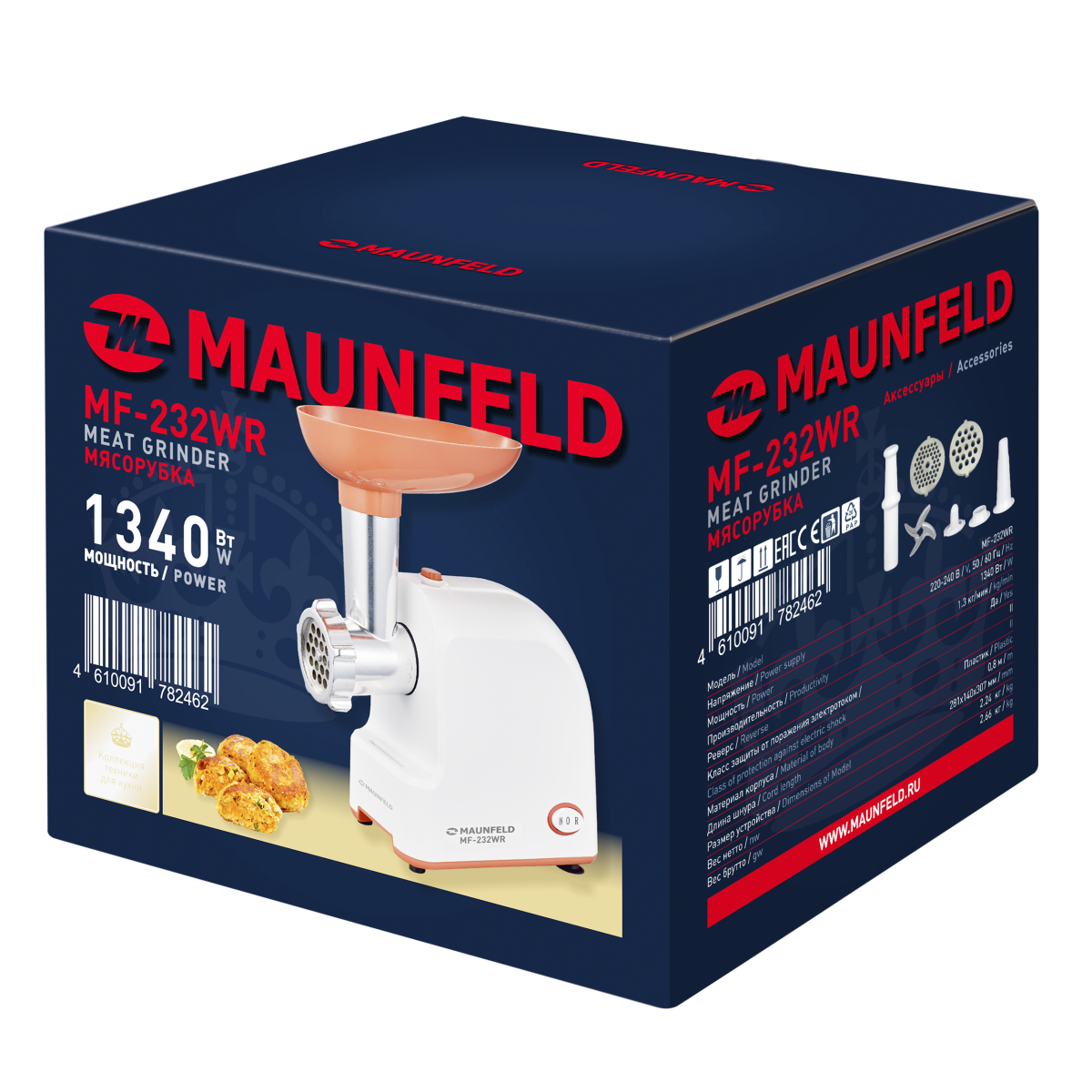 крупная и мелкая решетка, насадка для колбас и кеббе