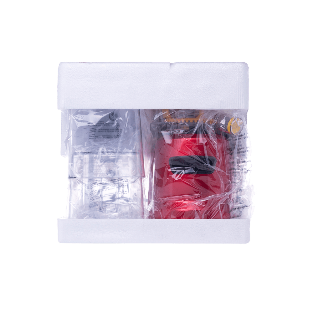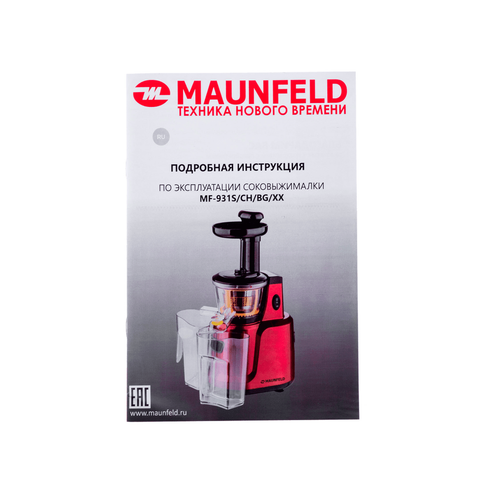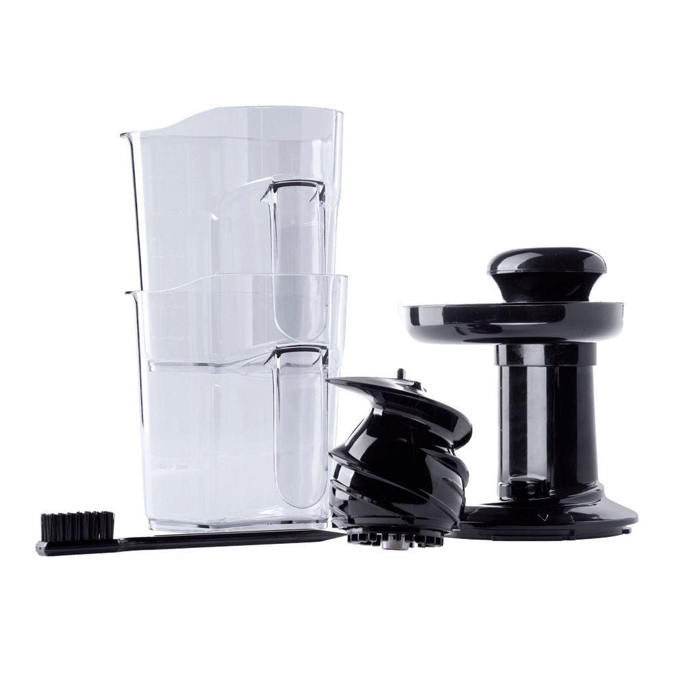 В комплекте: толкатель, загрузочный лоток, контейнер для сока 0,8л, вращающийся шнек, фильтр, щетка