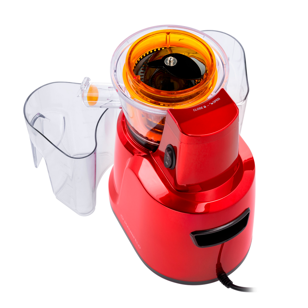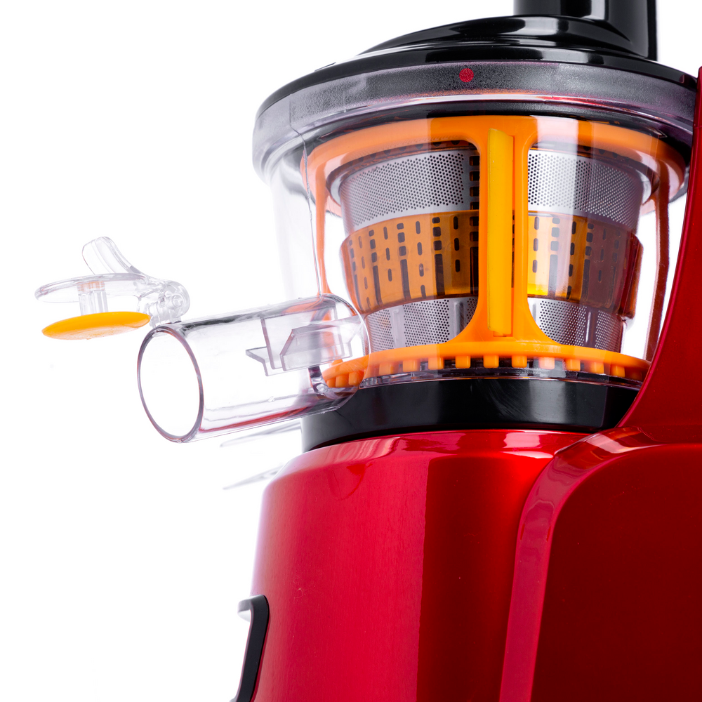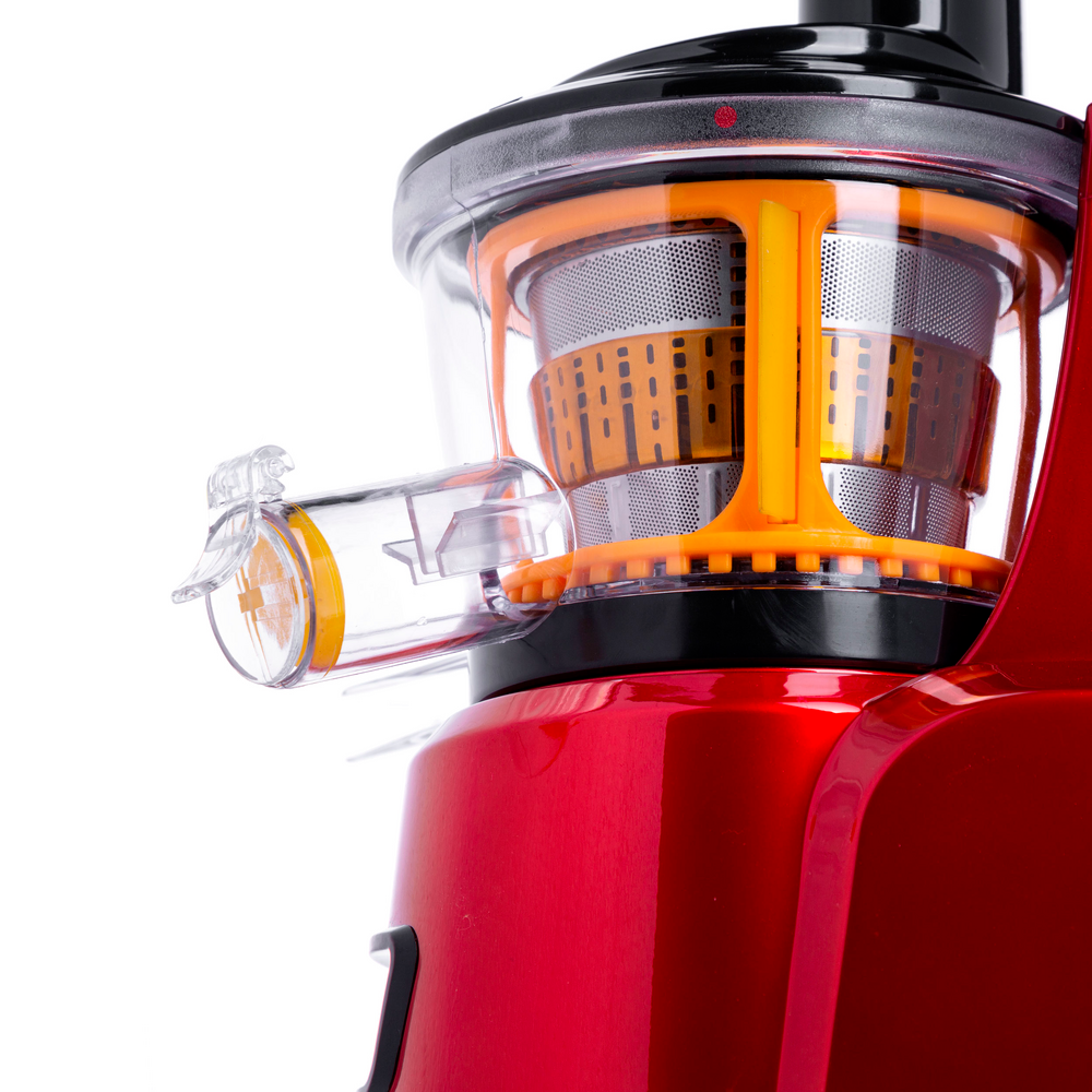Особенности Инновационная соковыжималка мощностью 150 Вт выполнена из высокотехнологичного пластика яркого вишневого цвета и станет настоящим украшением вашей кухни. Шнековые соковыжималки – это